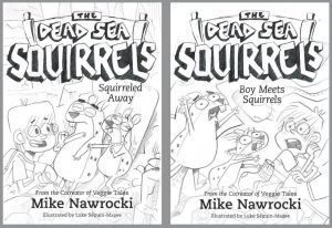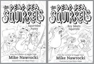 Have you ever wondered what goes into creating illustrated characters for books? Tyndale Kids is giving you a little sneak peek behind the creative curtain to see what the process is like and to give you a glimpse inside the hilarious, quirky, and, at times, petrified new series called the Dead Sea Squirrels, by Mike Nawrocki. In case you aren’t familiar with him, Mike Nawrocki is the co-creator of VeggieTales and the voice of the beloved Larry the Cucumber. He’s back with this new chapter book series for kids who’ve graduated from Veggie Tales but haven’t graduated from laughing.