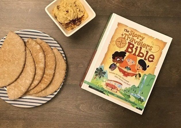 Make biblical foods, turn your living room into a game board with the Story-Travelers-Printable-Game, then finish with a bedtime story from the book.