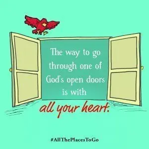 Dear God, we know that You are the God of the open door. Every moment of every day is an opportunity for us to grow and serve and make a positive impact on others. Because of Your love, we don’t have to be afraid of failure, nor do we have to live under the tyranny of always making the perfect choice. We pray You will give us the courage and wisdom to walk through whatever doors You open before us. And we pray that through our actions, Your will will be done. In Jesus’ Name, Amen.